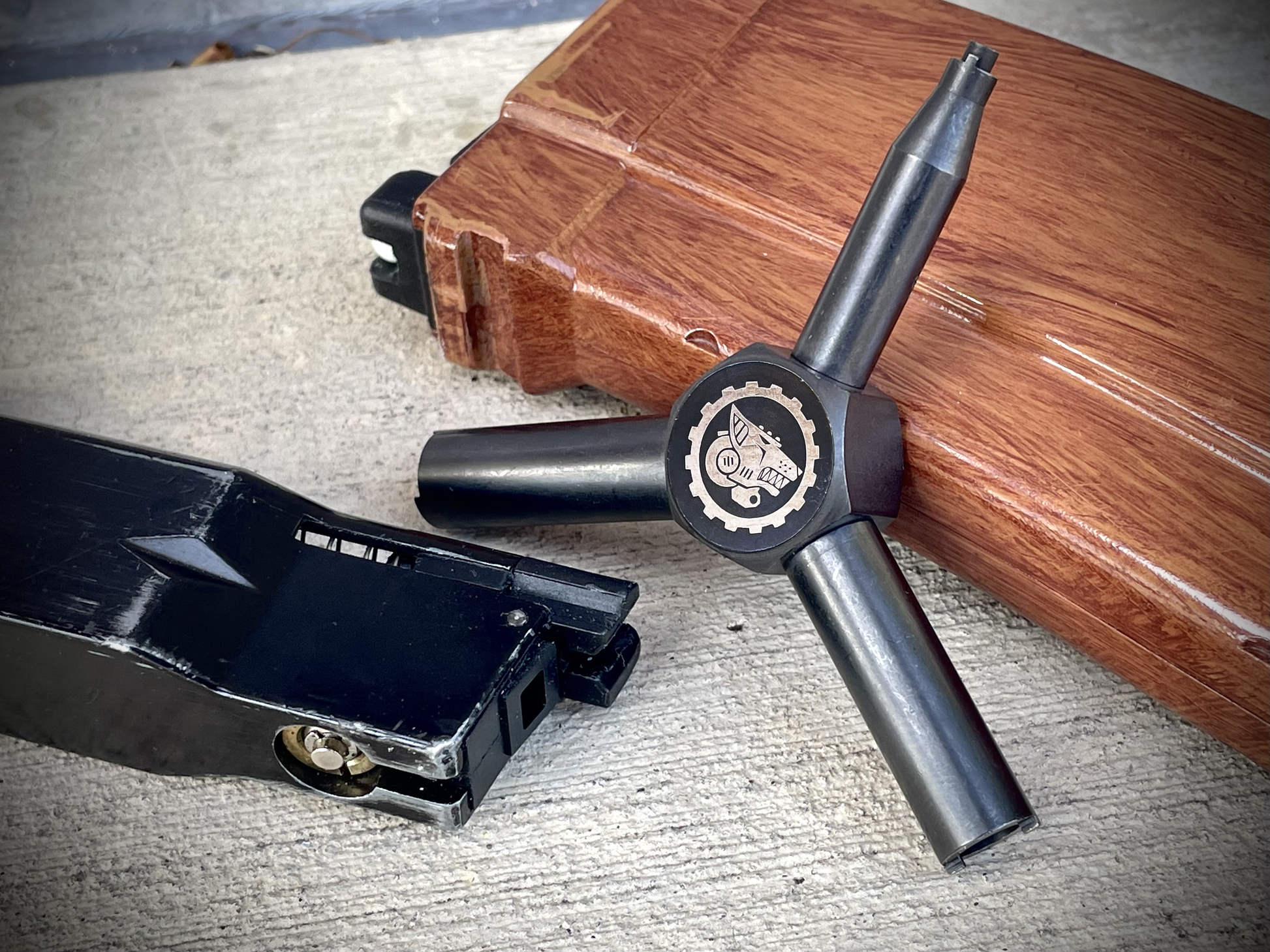 3-in-1 tool for removing both fill valves, and release valves from your GBB magazines. A perfect tool to help disassemble leaky magazines in order to troubleshoot.